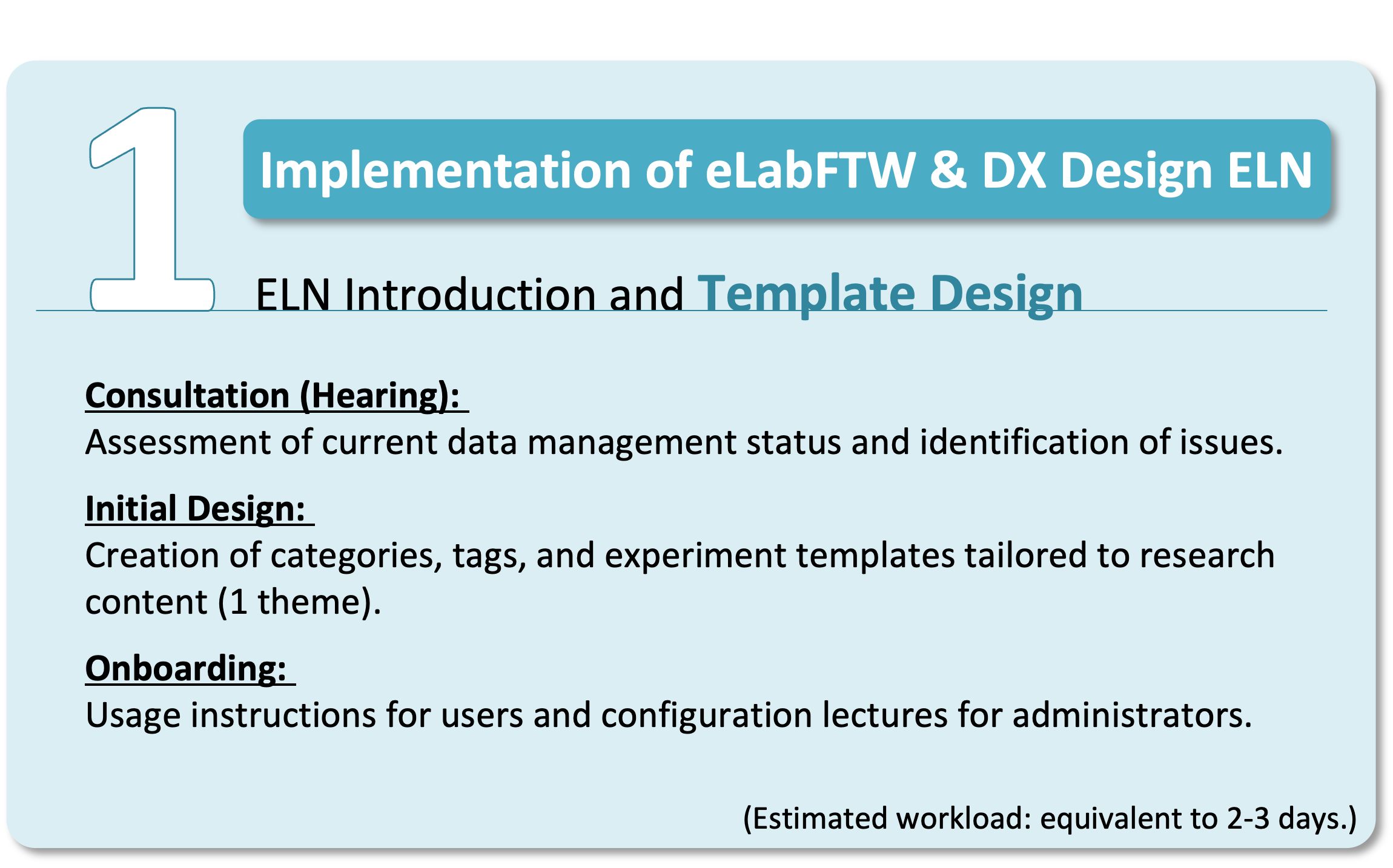 Start Small, Grow Big: Instead of immediately introducing expensive systems, we utilize the open-source “eLabFTW” to realize a minimum and flexible start.