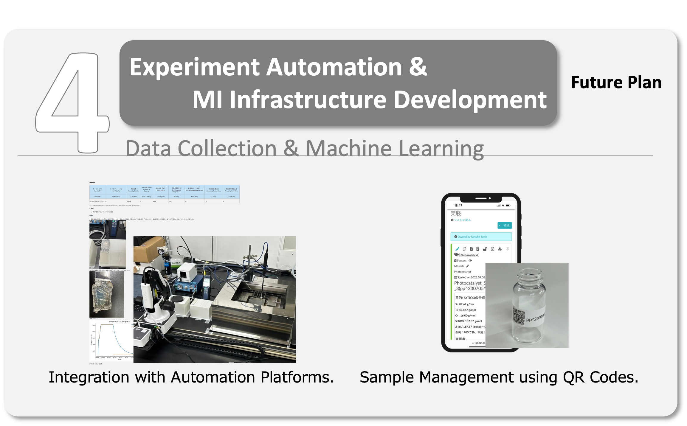 Data Design with the Future in Mind: We support the construction of reusable data structures (FAIR data) premised on future connection to Materials Informatics (MI) and laboratory automation.